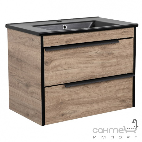 Подвесная тумба с раковиной Аква Родос Лофт Нео Дуб Севилья Arte Black 100 дуб севилья, раковина матовая черная