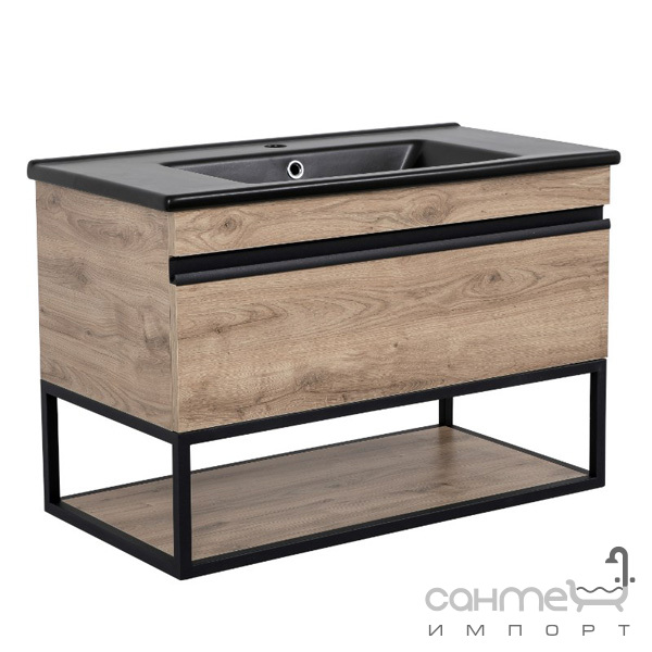 Подвесная тумба с раковиной Аква Родос Лофт Айрон Дуб Севилья Arte Black 75 дуб севилья, раковина матовая черная