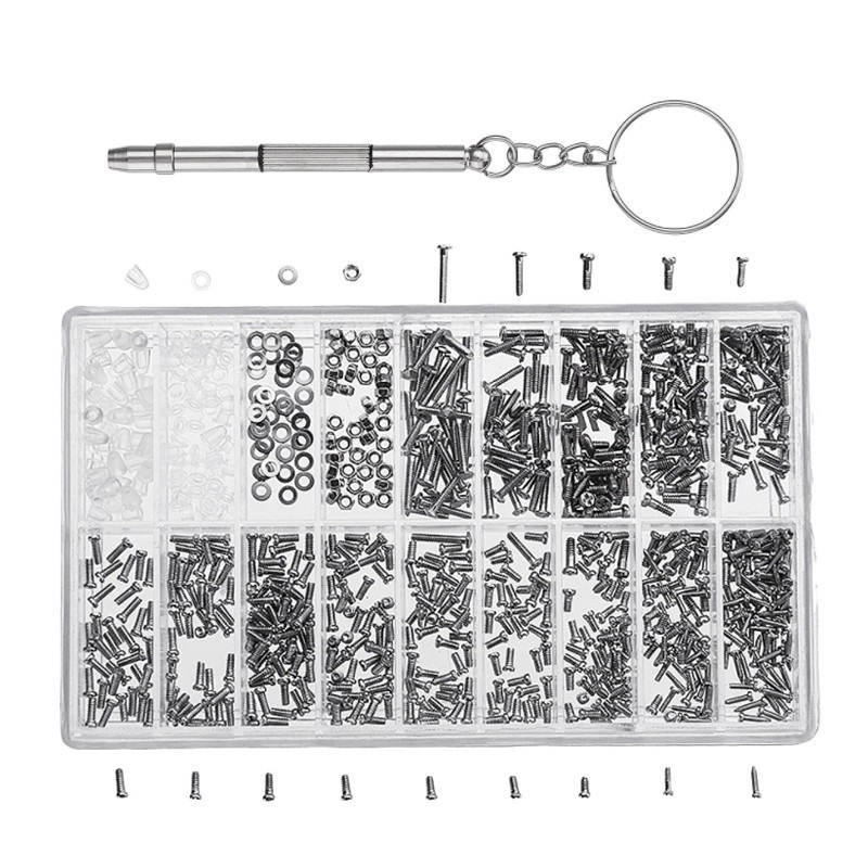Опис Набор MHZ винтов гаек шайб и трансформируемой отвертки для ремонта очков часов 1000 шт.