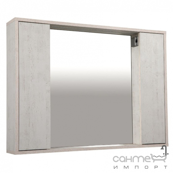 Опис Зеркало с LED-подсветкой, полкой и двумя шкафчиками по бокам Аква Родос Шельф 100 нордленд