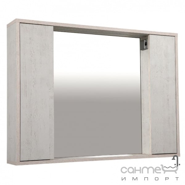 Зеркало с LED-подсветкой, полкой и двумя шкафчиками по бокам Аква Родос Шельф 85 нордленд