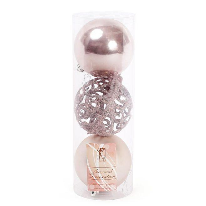 Набір новорічних кульок 3 шт. діаметром 8 см колір рожевий.