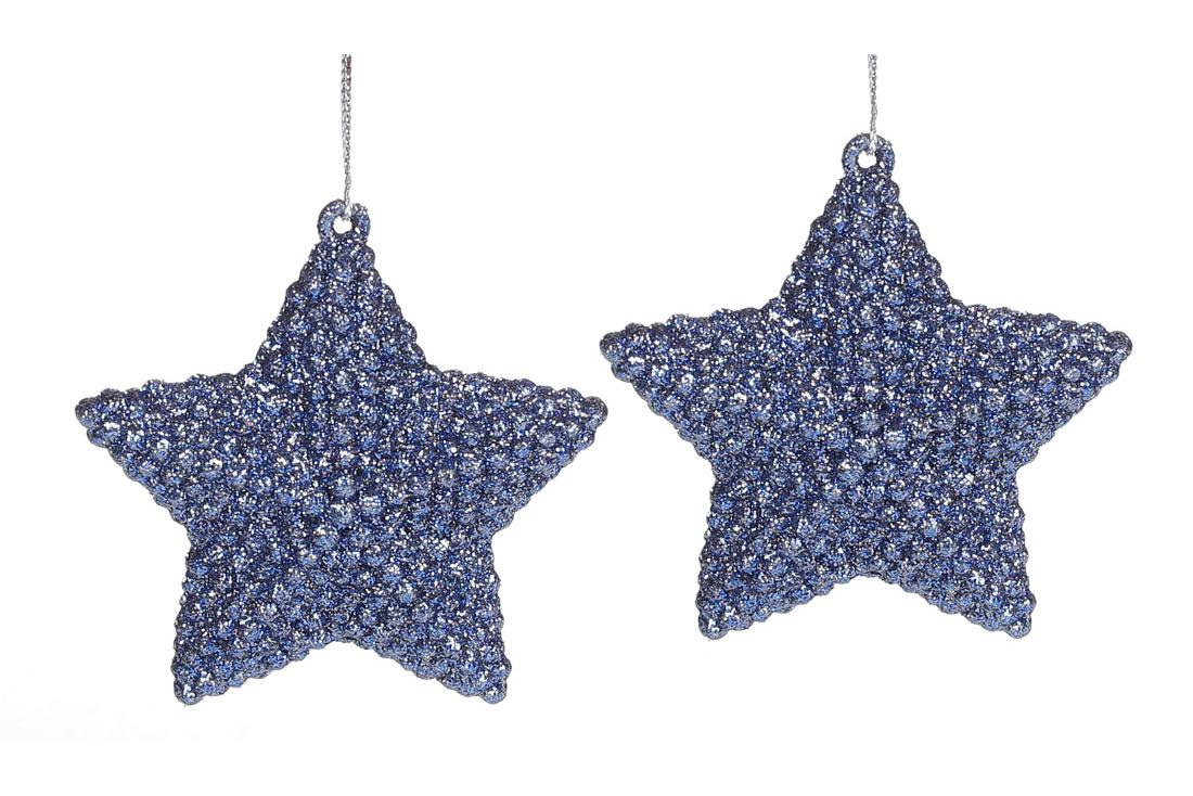 Набір (2 шт.) ялинкових прикрас Зірка 7,5 см, колір - темно-синій глітер