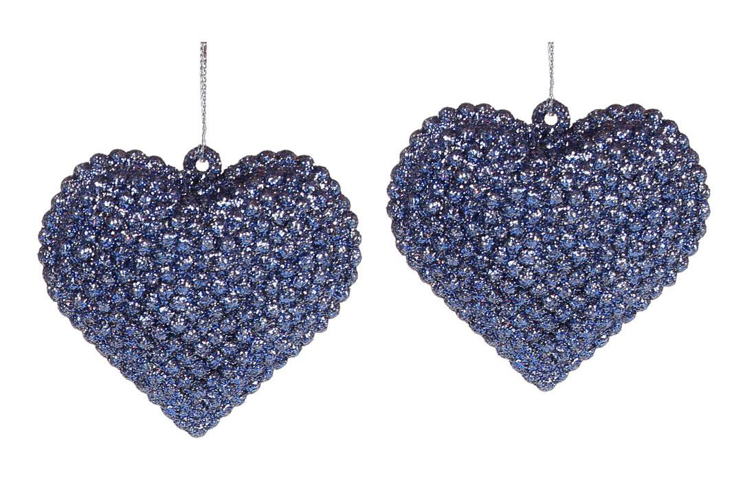 Набір (2 шт.) ялинкових прикрас Серце 6 см, колір - темно-синій глітер