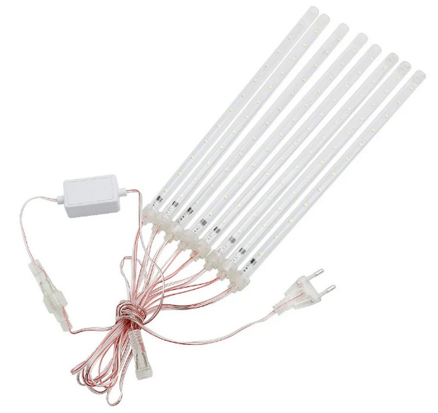 Комплект складається з 8 паличок-бурульок по 50см кожна. Двостороннє світіння, тепле-біле світло.