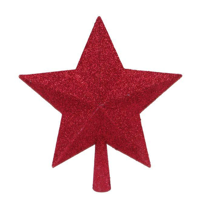Верхівка пластикова на ялинку 25 см, колір червоний з гліттером.