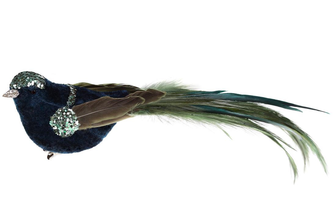 Декоративна пташка на кліпсі BonaDi 19 см Зелений із сріблястим (499-079)