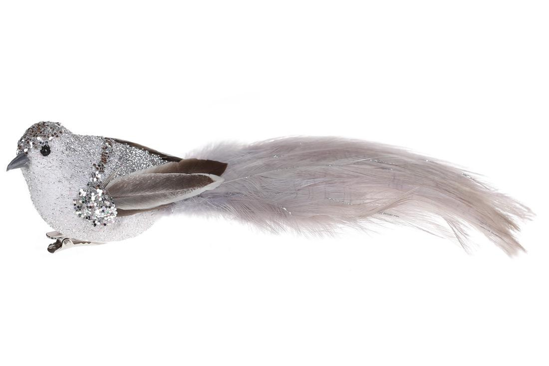 Декоративний птах на кліпсі 21 см, колір - сріблястий