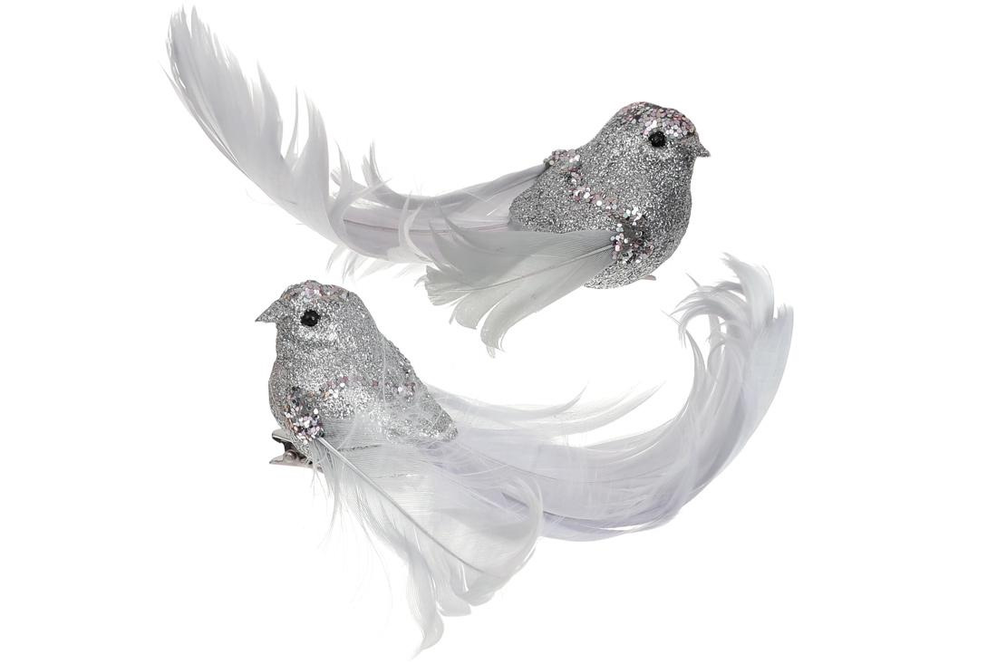 Декоративний птах на кліпсі 12.5 см, 2 види, колір - срібло