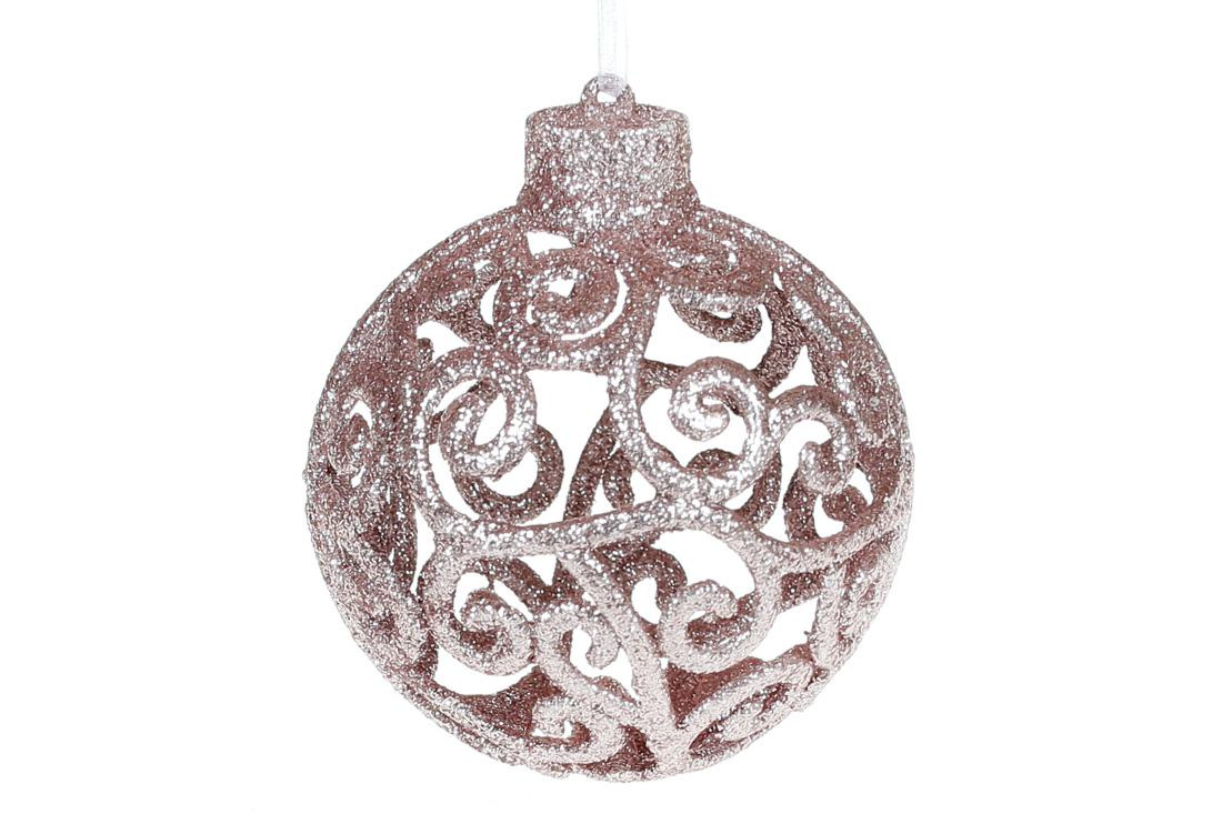 Ялинкова прикраса Ажурний куля 8 см, колір - рожевий