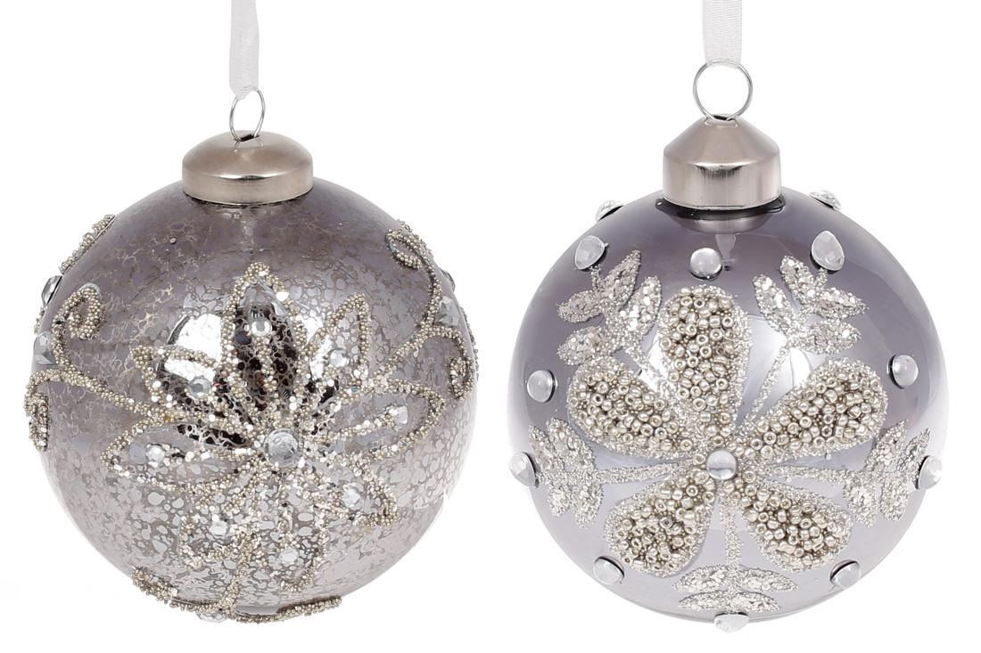 Ялинкова куля 8 см Античне срібло, мікс 2 види в дисплей-коробці