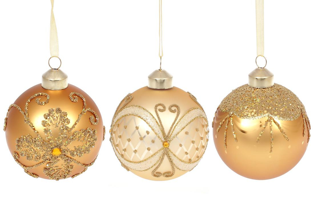 Опис Набір ялинкових кульок BonaDi 8 см 3 шт Золотистий (854-324)