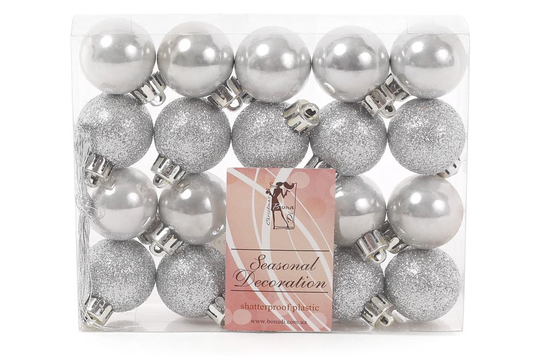 Набір новорічних кульок BonaDi пластик 20 шт D 3 см Сріблястий (147-105)