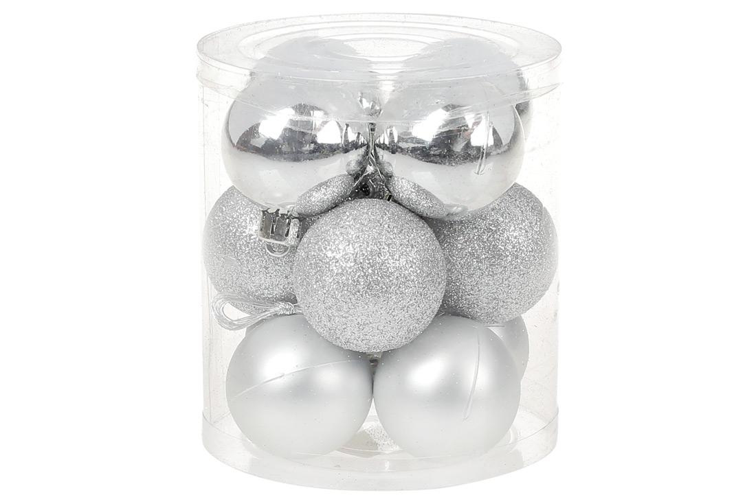 Набір ялинкових куль 4 см, колір - срібло, 12 шт.: глянець, матовий, гліттер - по 4 шт.