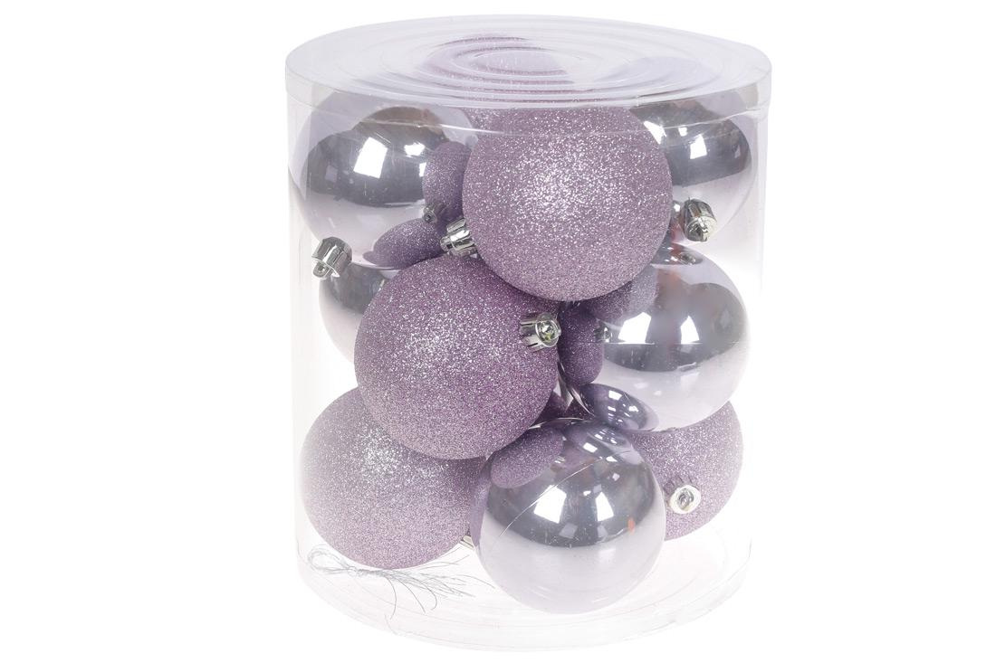 Набір ялинкових куль 8 см, колір - ніжно-ліловий, 12 шт.: гліттер, перламутр - по 6 шт.