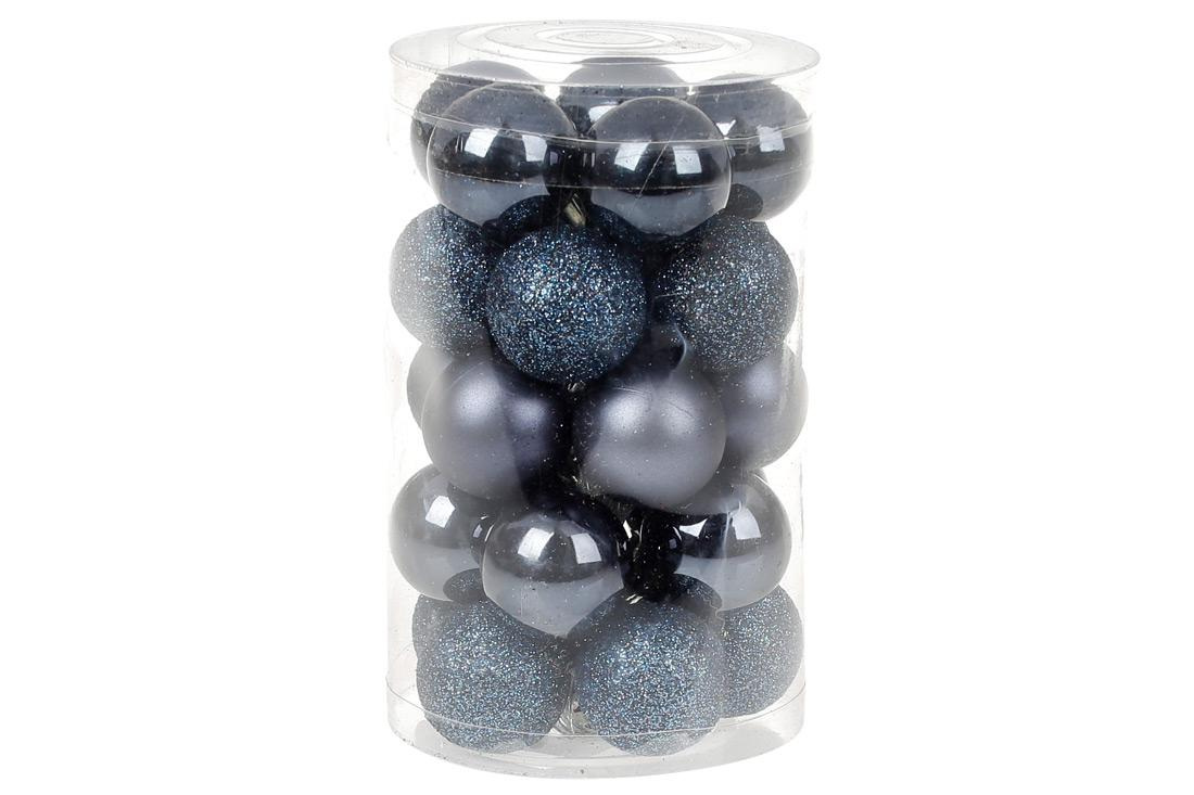 Набір ялинкових кульок 3 см/ колір - опівнічно-синій/ 25 шт.: 5 шт. - матовий/ 10 шт. - глянець/ 10 шт. - гліттер