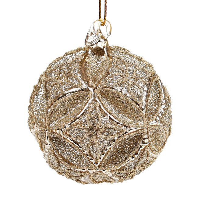 Новорічна куля рельєфної форми з декором із глітера 8 см, колір - шампань.