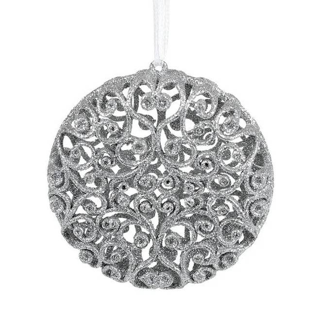 Новорічна пластикова підвіска Ажур срібного кольору.