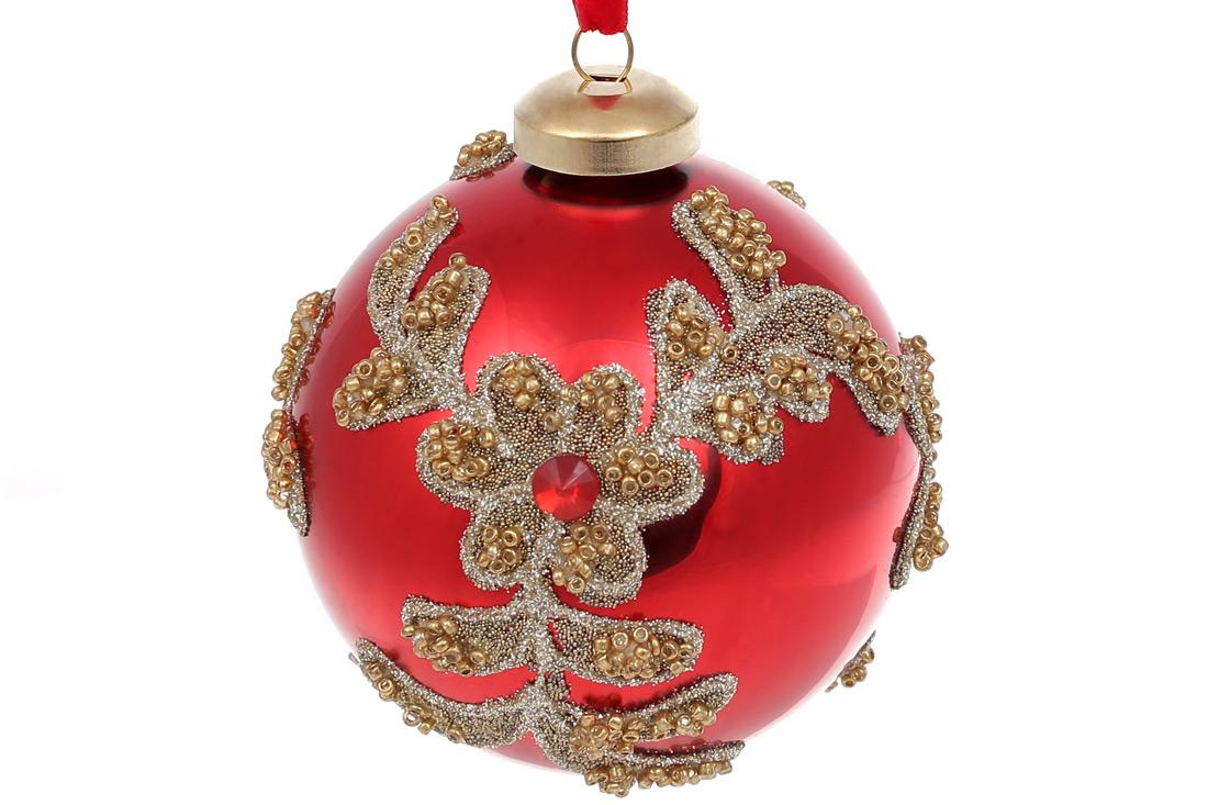 Ялинкова куля BonaDi 8 см Червоний із золотим (874-284)