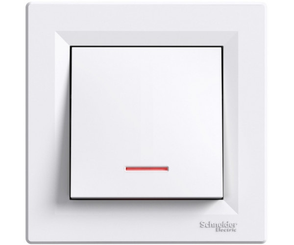 Выключатель одноклавишный с подсветкой SCHNEIDER Asfora белый