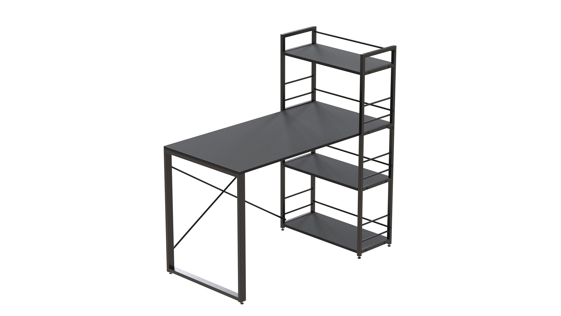 Розміри: висота – 75 см, довжина – 120 см, ширина – 60 см. Товщина стільниці – 16мм. Висота етажерки 120 см, полиця глибиною 28 см, відстань між полицями 30см. Колір металу – чорний. Колір ДСП Сосна Кембра .