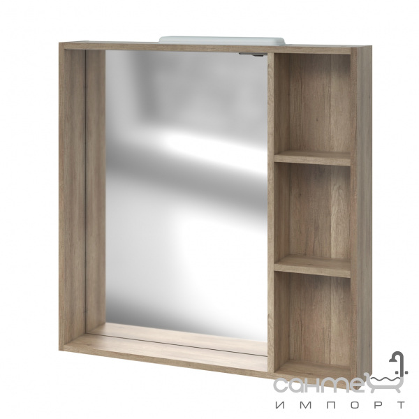 Опис Зеркало с подсветкой и полочками Mirater Twist 80 корабельный дуб