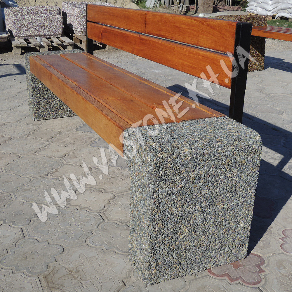 Лавочка «Модерн» со спинкой - замечательная уличная скамейка для дачи, парков и всевозможных зон отдыха на свежем воздухе. Ножки лавки произведены по технологии вымытого бетона, основным материалом которых является натуральный природный камень: гранит, галька, базальт, мрамор. Стильные и изящные садовые лавочки комплектуются широким деревянным брусом в местах сидения, окрашенные и покрытые лаком дощечки долговечны, которым не страшны климатические изменения, жара и холод. Каркас спинки из прочного стального профиля, покрашенный стойкой краской. Разновидности лавочки по брусу: Порода дерева: БРУС ОЛЬХА +2010 грн; БРУС ЯСЕНЬ: (под заказ) Цвет дерева - ОРЕХ (цвет бруса можно изменить под заказ от 5 шт.) Купить лавочку в Харькове или по всей Украине не составит труда, мы подберем для Вас удобный вариант доставки, способ оплаты и при необходимости выполним монтаж под ключ. Звоните, с радостью ответим на все вопросы.