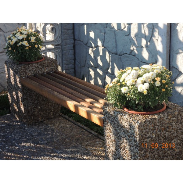 Лавочка «Цветник» - замечательная уличная скамейка для дачи, парков и всевозможных зон отдыха на свежем воздухе. Особенностью изделия являются её боковушки, сделаны они с отверстием, в которое можно посадить цветы, таким образом Вы решаете две задачи: создаете комфорт и красоту. Ножки лавки произведены по технологии вымытого бетона, основным материалом которых является натуральный природный камень: гранит, галька, базальт, мрамор. Стильные и изящные садовые лавочки комплектуются деревянным брусом в местах сидения, окрашенные и покрытые лаком дощечки долговечны, которым не страшны климатические изменения, жара и холод. Разновидности лавочки по брусу: Порода дерева: БРУС ОЛЬХА +1270 грн; БРУС ЯСЕНЬ: (под заказ) Цвет дерева - ОРЕХ (цвет бруса можно изменить под заказ от 5 шт.) Купить лавочку в Харькове или по всей Украине не составит труда, мы подберем для Вас удобный вариант доставки, способ оплаты и при необходимости выполним монтаж под ключ. Звоните, с радостью ответим на все вопросы.