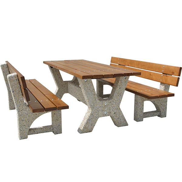 Садовый стол со скамейками «Гарден - Верона" - это НОВИНКА! нашего производства, замечательный вариант для беседки и всевозможных зон отдыха на свежем воздухе. Ножки комплекта произведены по технологии вымытого бетона, основным материалом которых является натуральный природный камень: гранит, галька, базальт, мрамор. Стильный и изящный стол с лавочками комплектуются деревянным брусом в местах сидения, с деревянной столешницей, окрашенные и покрытые лаком дощечки долговечны, которым не страшны климатические изменения, жара и холод. Разновидности лавочки/ стола по брусу: Порода дерева: БРУС ОЛЬХА +6190 грн; БРУС ЯСЕНЬ (под заказ) Цвет дерева - ОРЕХ (цвет бруса можно изменить под заказ от 3 шт.) Купить стол с лавочками в Харькове или по всей Украине не составит труда, мы подберем для Вас удобный вариант доставки, способ оплаты и при необходимости выполним монтаж под ключ. Звоните, с радостью ответим на все вопросы.