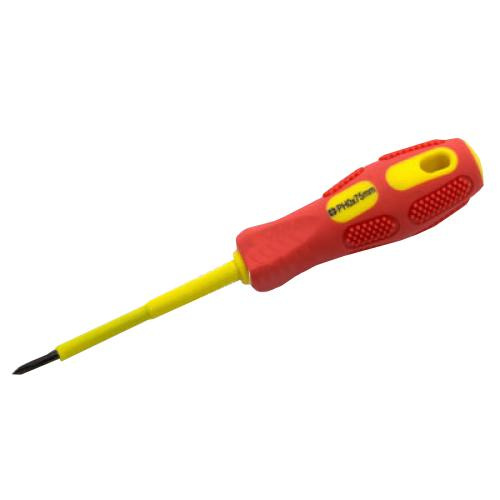 Отвертка диэлектрическая модели LTL60004 от производителя Lemanso - компактный инструмент, который используют для работ, где есть высокое напряжение (до 380V), например: - установка счетчиков; - монтаж розеток и выключателей; - прокладка проводки и т. д. Конструкция LTL60004 и основные параметры Конструкция отвертки включает рукоять, стержень с крестовым наконечником. Материалы рукоятки - полипропилен и термопластичная резина, благодаря которым, отвертка защищает рабочего от поражения электрическим током. На рукоятке нанесена надпись с габаритами отвертки, в нашем случае - это PH0x75. Купить отвертку LTL60004 можно у нас в интернет магазине по доступной цене. Все изделия оригинальные и проходят проверку на повреждения. Доставка по всей Украине.