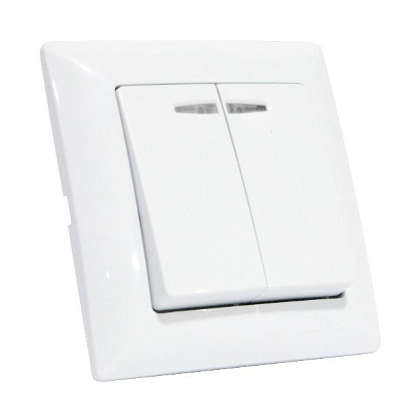 Вимикач 2-клавішний з підсвічуванням білий EVA