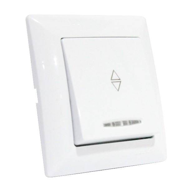 Вимикач прохідний 1-клавішний з підсвічуванням білий TINA