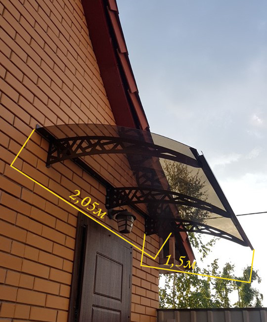 Завдяки своїм розмірам 2.05x1.5 м, цей навіс ідеально підійде для багатьох типів входів і приведе до гармонійного поєднання з архітектурою будинку.
