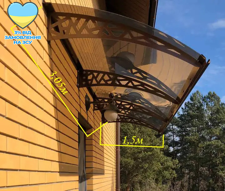 Опис Металический сборный навес (козырек) над дверью Dash'Ok 3.05x1.5 м Style, тем-серый, мон 3 мм, бронза