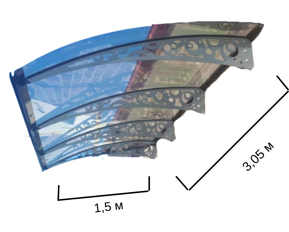 Завдяки своїм розмірам 3.05x1.5 м, цей навіс ідеально підійде для багатьох типів входів і приведе до гармонійного поєднання з архітектурою будинку.