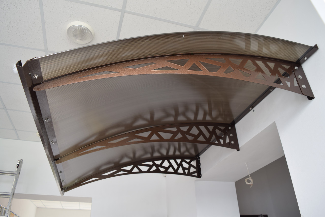 Опис Металевий збірний навіс (козирок) над дверима Dash'Ok 2.05x1.5 м Hi-tech, мідь антик, сот 6 мм, прозр