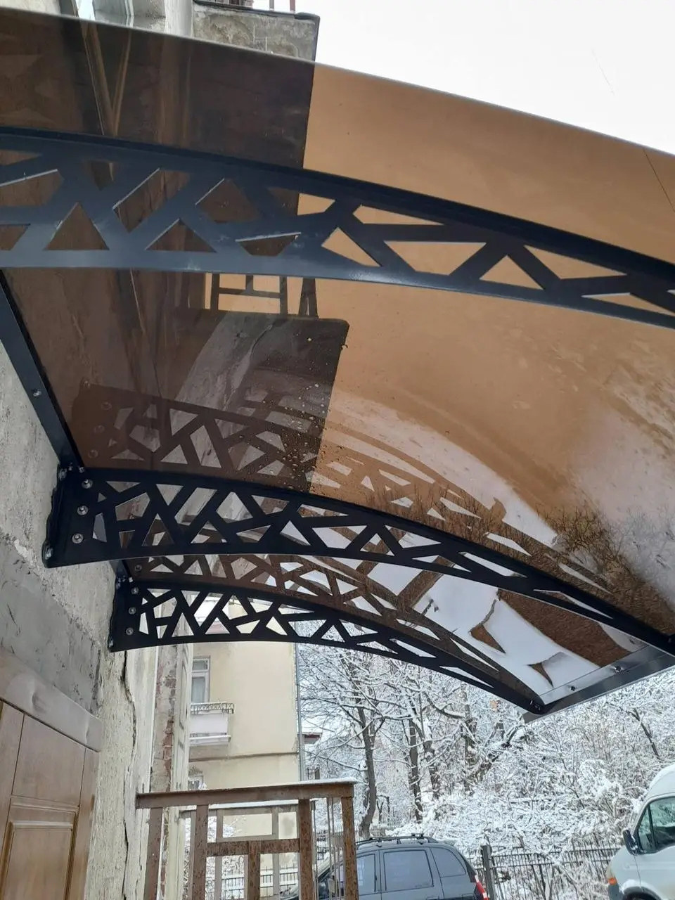 Опис Металевий збірний навіс (козирок) над дверима Dash'Ok 2.05x1.5 м Hi-tech, темно-сірий, мон 4 мм, бронза