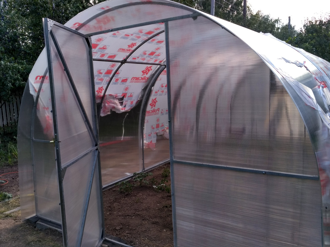 Каждая арка усилена дополнительной горизонтальной трубой, что повышает устойчивость к ветровым и снежным нагрузкам.