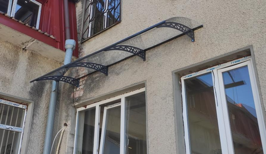 Виготовлений з високоякісного полікарбонату, цей навіс є міцним та стійким до ультрафіолетових променів, що забезпечує тривалий термін служби без вигорання або пошкоджень. Полікарбонат також має високу прозорість, дозволяючи достатньо природного світла проникати до входу.