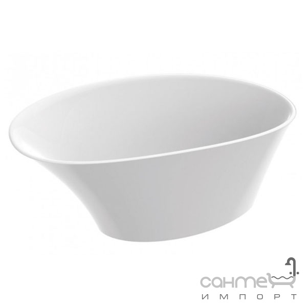 Овальная отдельностоящая сидячая ванна из литого мрамора Marmorin Biwa 1398x933 белая