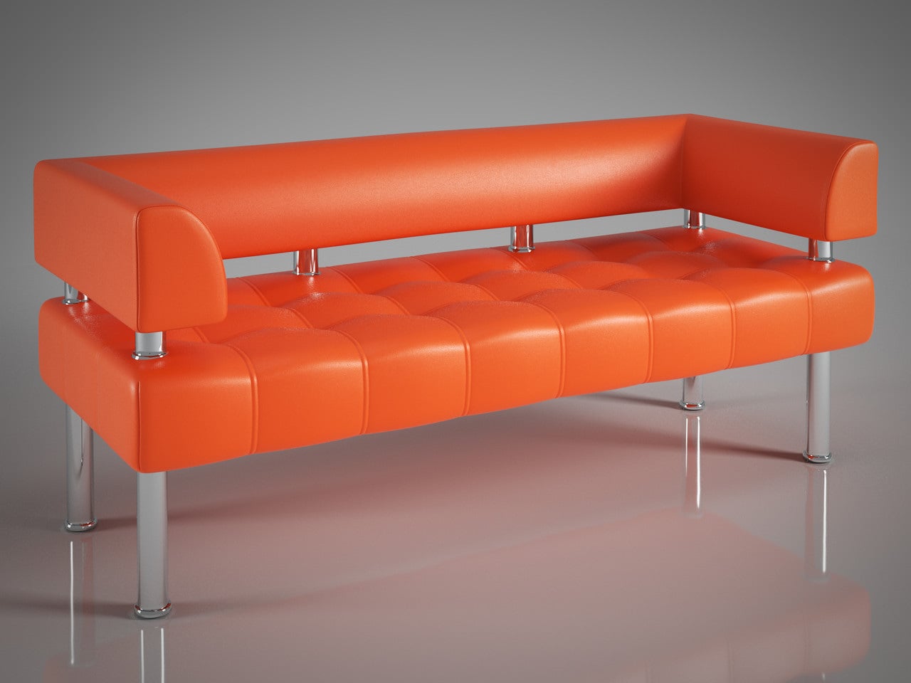 Офисный диван Тонус Сентензо 160х60 см с подлокотниками кожзам оранжевого цвета