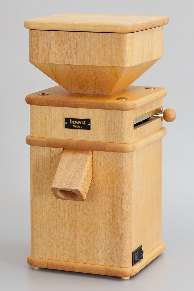Млин електричний Hawos M2 hawos млин M2 - це класика в квадратному форматі, оснащена сильною модульної технікою. Її висока продуктивність роблять hawos M2 незамінним помічником на кухні. Млини фірми hawоs Muehle1 і Muehle2 - це вдале поєднання будови і функції. Високоякісна техніка hawos в масивному буковому лісі. Зроблені в ремісничому досконало. Корпус М1 і М2 з буку, покрита оліфою. Лляне масло створює візерунки дерева, яка не залишається не поміченою. Кожен раз, при роботі цієї млини, насолоджуєшся її красою. Підходить також для помелу сухої кукурудзи. Фанера являє собою склеєні між собою тонкі листи березової деревини. Кожен шар повернутий на 90° і склеєний під високим тиском. Завдяки цьому корпус відрізняється високою стабільністю і довговічністю. Березова фанера застосовується в умовах підвищеного навантаження, де необхідно враховувати міцні характеристики матеріалу. Хороша кухня починається з хороших компонентів. Бездоганне походження продуктів і їх свіжість завжди мають попит. Чим свіже, тим краще. Це стосується борошна, круп і дерті - борошна грубого помелу. Злакове зерно багате вітамінами, мінеральними речовинами, протеїнами, ненасиченими кислотами. Нескінченно тонкі смакові нюанси надають кожному виду злаків свій певний характер. Перемелене зерно втрачає з часом цінні вітальні і ароматні речовини. Цей процес починається безпосередньо після перемелювання. Той, хто хоче повністю і по-справжньому насолодитися результатом своєї мистецтва приготування, повинен брати улюблені зерна і перемелювати їх сам. Випічка і свежесмолотой борошна - це насолода. Все це можливо з зерновими млинами від фірми hawos. Спробуйте! Мелють і насолоджуйтеся. Ваш Ральф Пигге. Директор фірми hawos Фірма hawos є провідним виробником електричних млинів, які застосовуються в домашньому господарстві, а також, для громадського користування, наприклад в магазинах. Серцем кожної млини hawos є сильний індустріальний мотор потужністю 360 W і навіть потужніше (600 W) . Надзвичайно великі жорна (перемалывающие навіть маленькі камені) виготовлені з кераміки і корунду. На добре осяжній шкалою можна встановлювати ступінь помелу. Результат подрібнення напевно буде відповідати вашим бажанням. Завдяки ремісничої точності і розвиненою техніці, кожна млин фірми hawos має 10 років гарантії. Все одно, яку з них ви зважитеся купити. Якщо ви будете мати млин фірми hawos,- то будете щасливі. Найкращою є млин з кам'яними жорнами. Кам'яні жорна - перевірені часом. Уже много столетий зерно превращается в муку между двумя камнями. При этом злаковые зёрна очищаются снаружи, а внутри щадяще перемалываются. Твёрдость и структура камней сказываются на результате перемалывания. Перемалывающие камни фирмы hawos были специально изготовлены из сплава керамики и корунда. Они чрезвычайно тверды, не чувствительны к инородным тельцам (например, к маленьким камушкам) и почти не изнашиваются. Благодаря точно спланированной обработке, камни фирмы hawos перемалывают зерно с невероятной точностью: согласно установке на шкале аппарата, - от грубого помола до мелкого. Все электрические мельницы фирмы hawos сделаны по одному принципу: Крышка, вместительный бункер для зерна. Корпус из дерева; внутри, по гигиеническим сображениям, камера помола изготовлена из пластмассы. Сильный индустриальный мотор с системой защиты от перегрева. 
