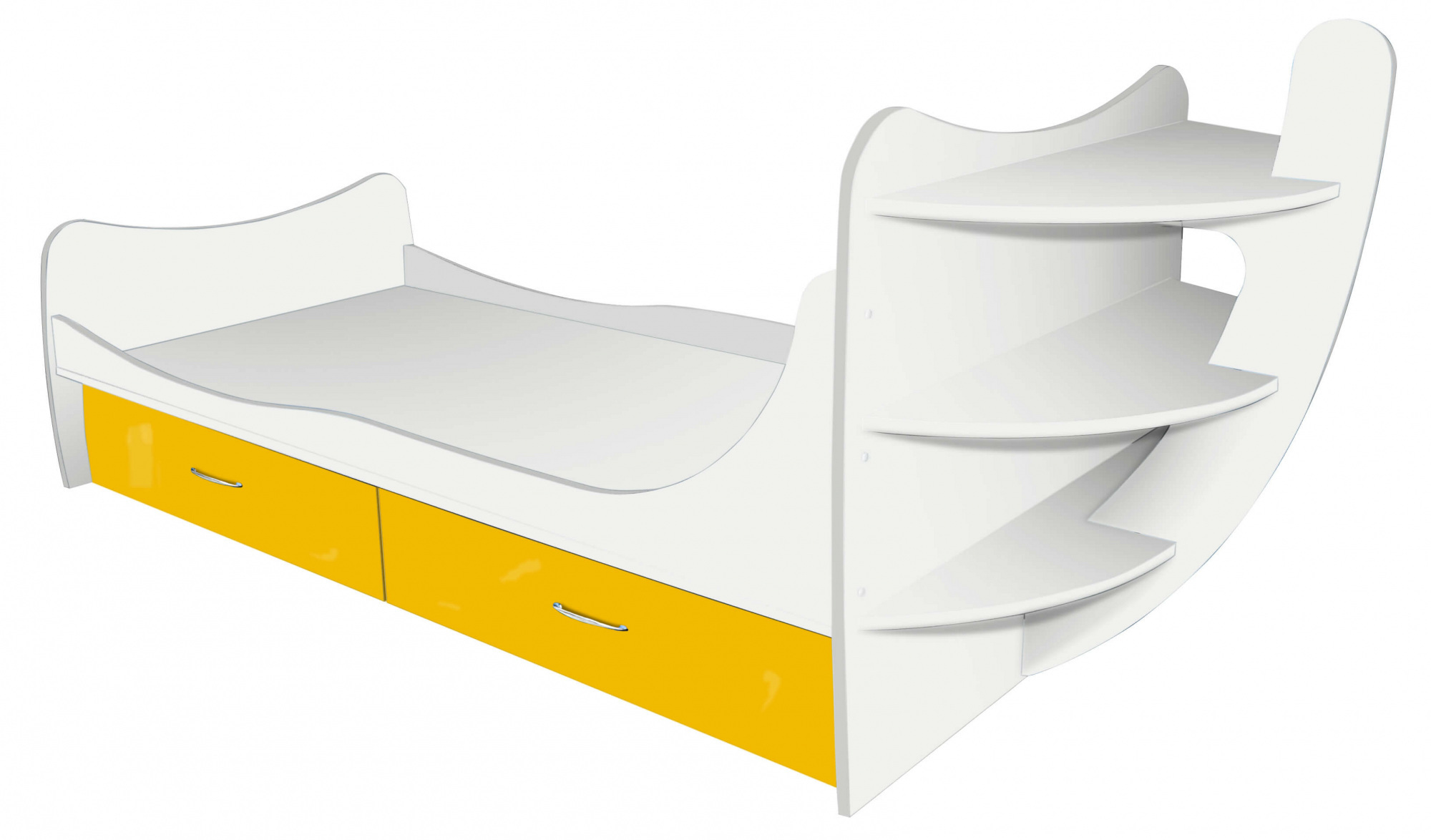 Ліжко Кораблик односпальне (плюс) - чудове рішення, практично для будь-якого дитячого інтер'єру, компактне і при цьому, максимально-функціональне, має дві висувні ящики.