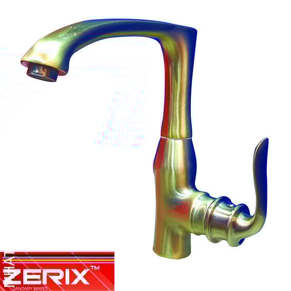 Корпус змішувача литий, вилив поворотний литий з косим напрямком струменя, картридж включення води 40 мм кераміка, кріпиться змішувач гайкою, що дуже надійно та зручно. Змішувач Zerix Z40219-2 покритий бронзовою фарбою, яка в свою чергу покрита лаком, що дає даному покриттю довговічність у використанні та надає шарму та вишуканості.