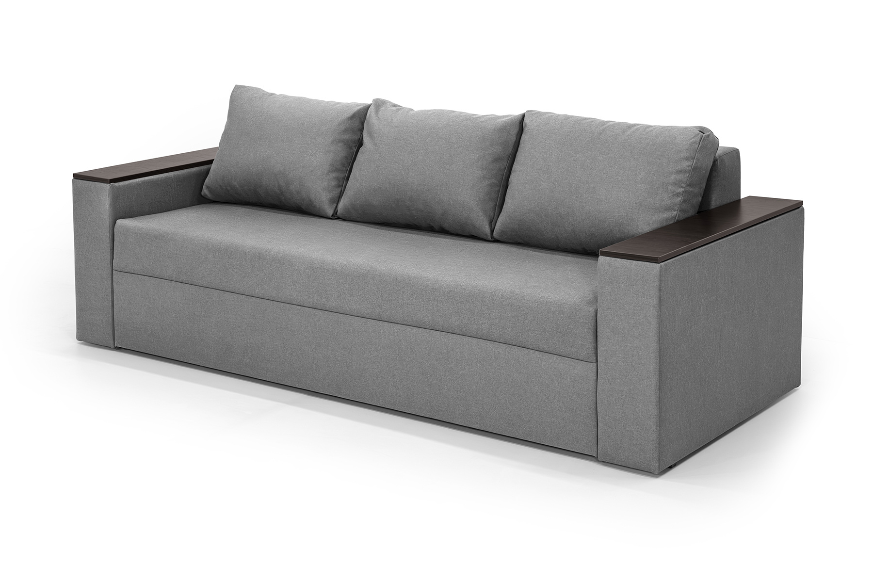 Зручний, стильний, надійний диван. При необхідності швидко перетворюється на двоспальне ліжко зі спальним місцем 195х145 см. Підлокітники дивану з вбудованими нішами. Підлокітники можна використовувати як полиці або журнальний столик.
