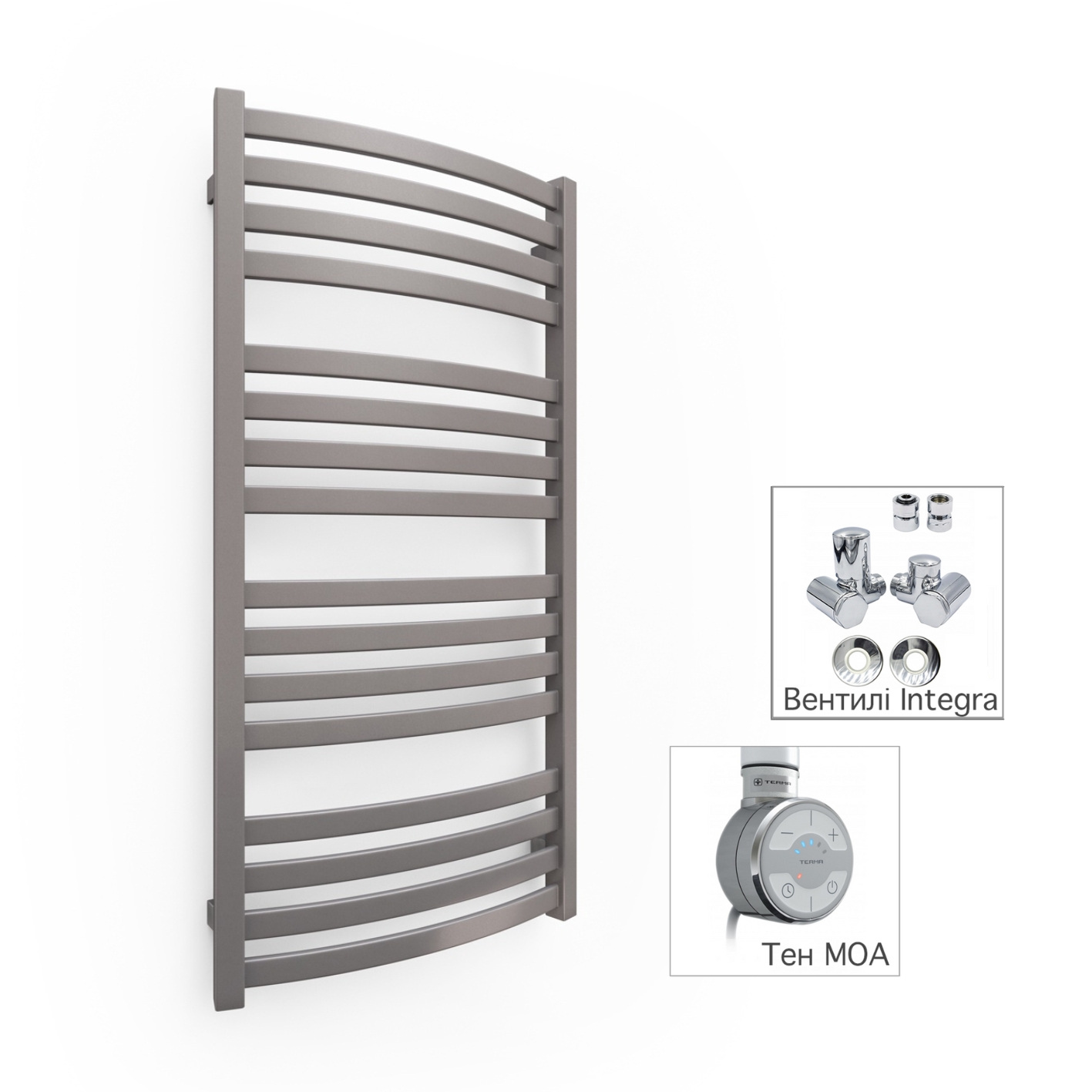 Рушникосушка комбінована Terma CRYSTAL 1200x400 Bright Cooper, тен MOA + вентиль Integra