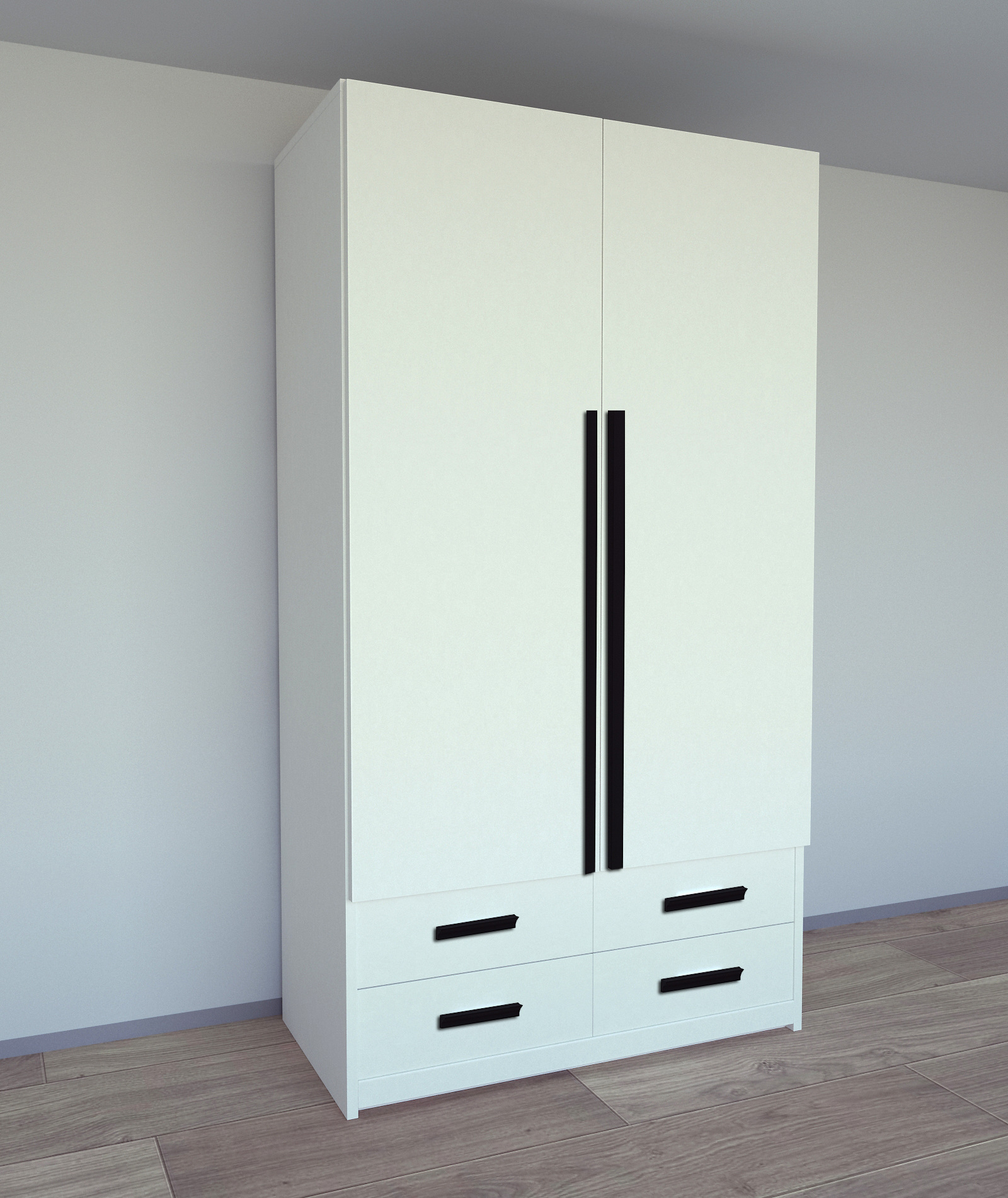 Шафа оснащена елегантними профільними ручками чорного матового кольору від виробника Virno Lines. Їх стильний, вишуканий дизайн подарує естетичну насолоду та наповнить Ваш інтер'єр легкістю і витонченістю.