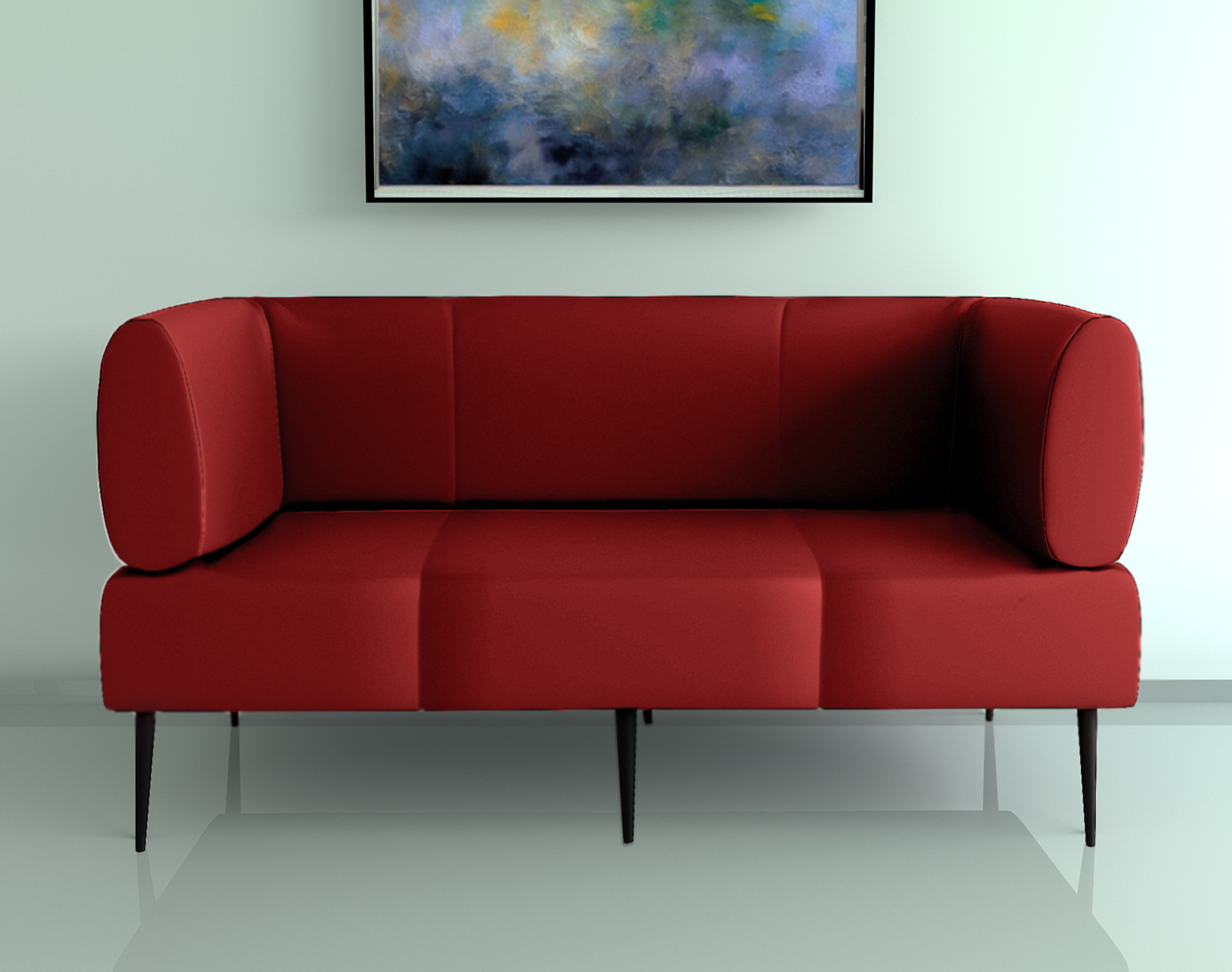 Диван офисный Tobi Sho Бенно-1 с подлокотниками и конусной ногой 1800х720х750 кожзам Красный 2210