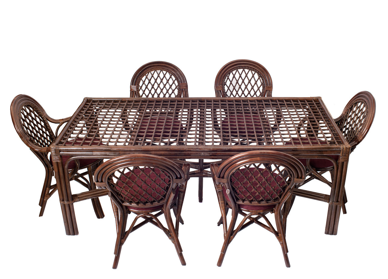 Обідні меблі стіл із плетеними 6 стільцями Буковина Cruzo з ротанга темно-коричневі