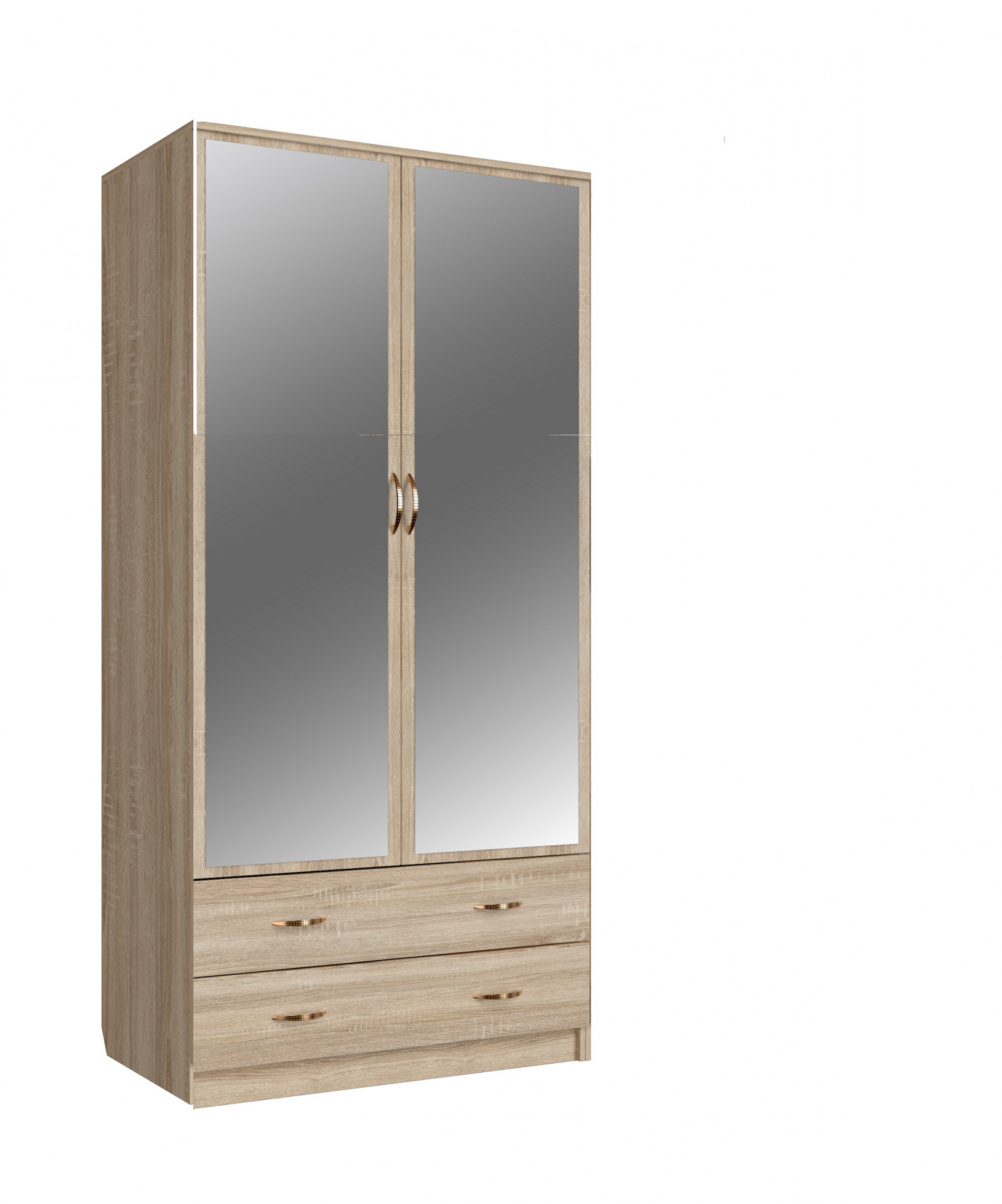Шафа плательна серії Барбара 0,9м. (дзеркальний, 2 ящики) МАКСІ МЕБЛІ Дуб сонома (10894)
